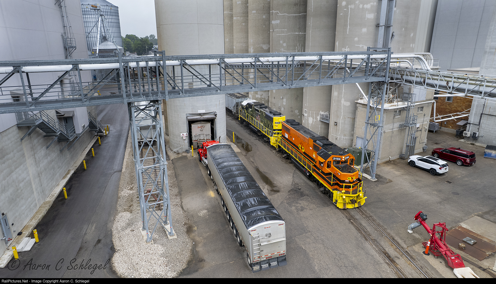 | The Grand Rapids Eastern pulls thru King Milling as it spots the Industry. This is former Grand Trunk Western Tacage that the GRE keeps alive. The King Milling Company has been family owned and operated since 1890. |