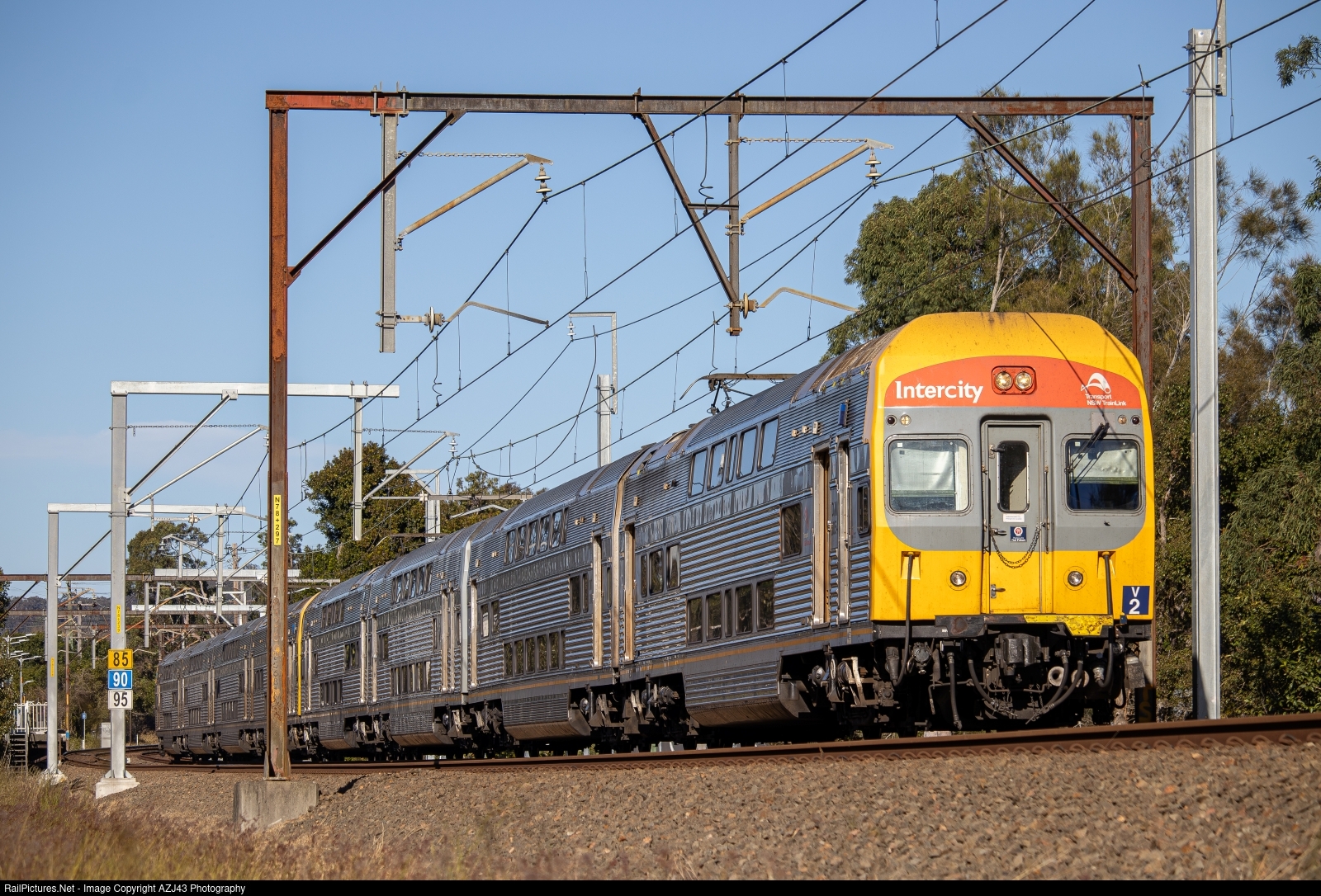 | Interurban sets V2 and V8 roar away from Point Clare station bound for Newcastle Interchange during the final week of regular V set operations on the central coast. It is anticipated that the entire fleet across the state will be withdrawn by the end of the year. |