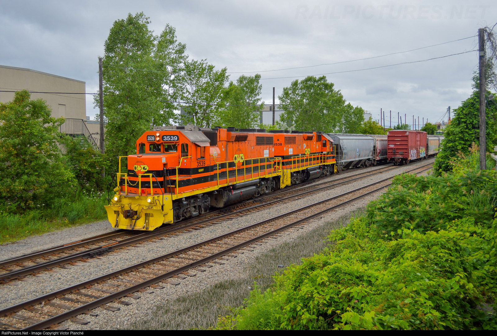 A pair of ex-Missouri Pacific GP38-2 (QGRY 3539, nee MP 900 and QGRY 3538, nee MP 943) are switching at Oil-Dri, in Laval, on the CPKC Parc Subdivision. QG 503 runs every Sunday morning and serves all the customers between Saint-Martin Junction and QGRY Sainte-Thérèse yard.