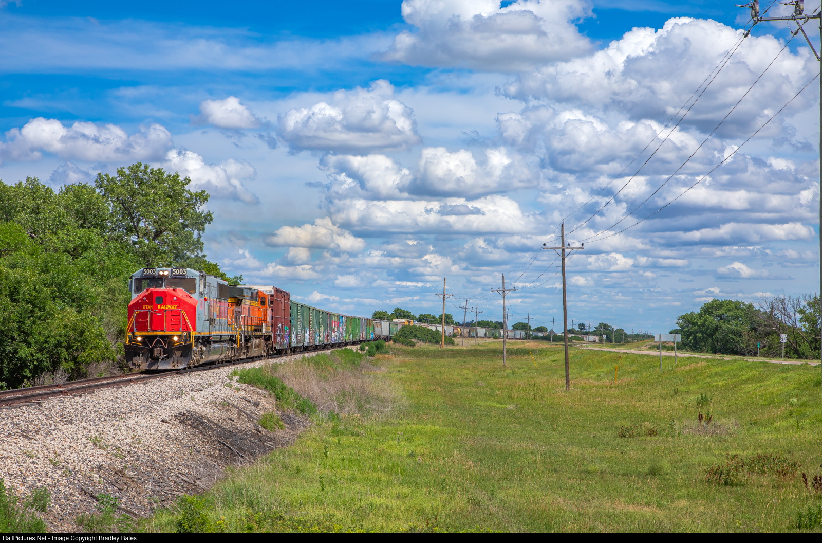 UTAH MK50-3 #5003 leads KYLE westbound freight train SALI through Stuttgart, KS.