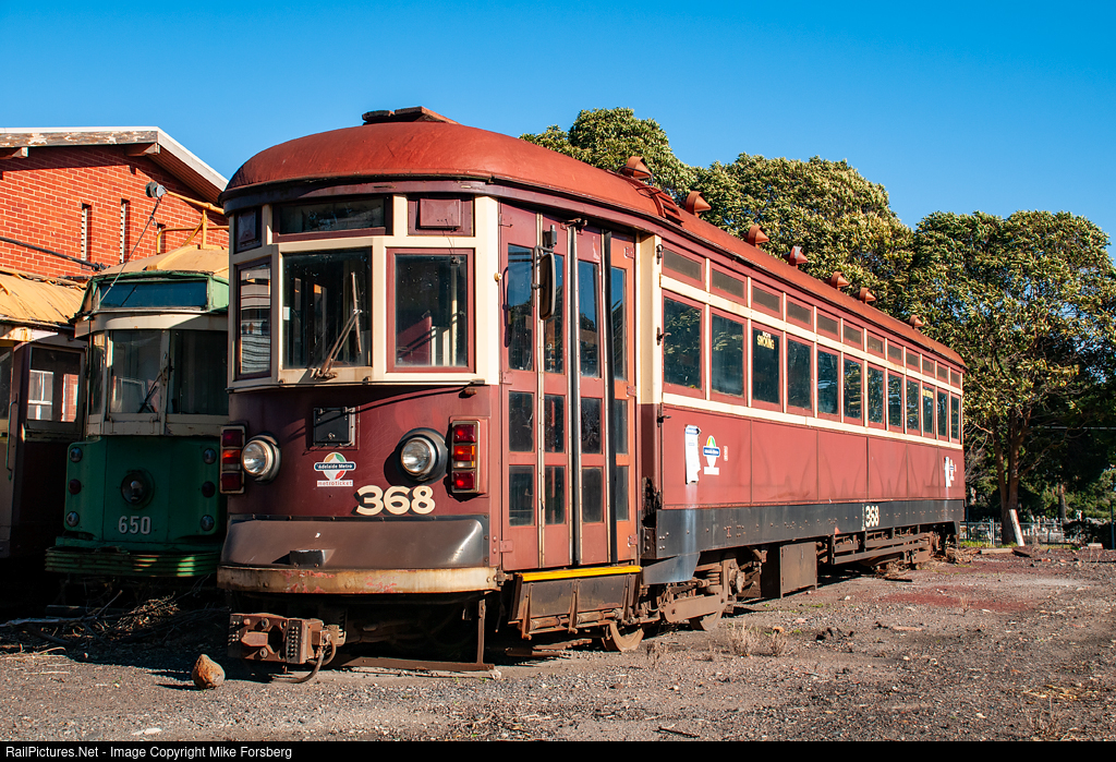 Vintage Adelaide Metro tram H.368 stored at Newport Workshops.