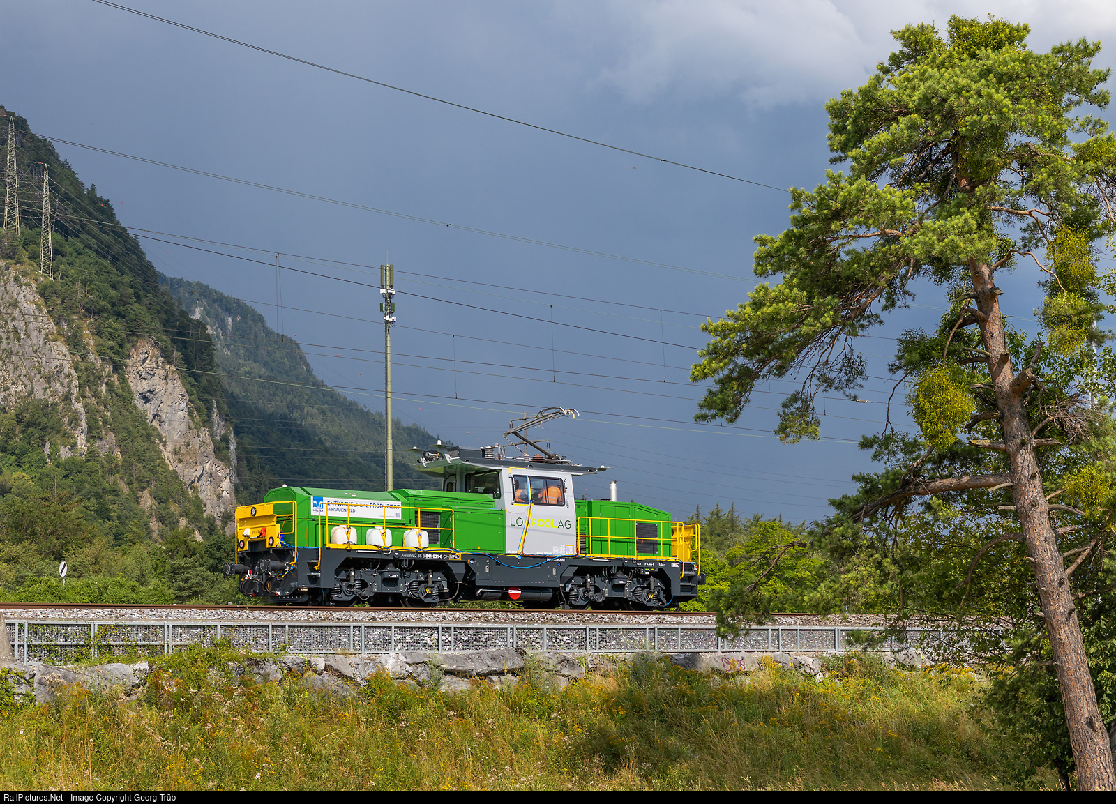 The Aeam 841 # 031 locomotive of the LokpoolAG was developed by Müller Technologie AG in Frauenfeld primarily for use in shunting, construction site, and cargo services. As things stand today, 80% of journeys can be carried out using pantographs with overhead line power, with the remaining 20% covered by batteries or a diesel generator. The new tribrid locomotive is designed to ensure 100% energy independence across multiple work assignments and shifts. Thanks to tribrid operation, diesel consumption is reduced by 85%. The basis of ths "new" locomotive is former SBB diesellocomotive Am 841 # 031 built by GEC Alstom in Spain in series of 40 in 1996/1997. Several of this locomotives were bought from the SBB by Lokpool and Müller. Some were used after revision by Lokpool as diesellocomotives Am 841. The Aeam 841 # 031, weighing 78,5 ton with a maximum velocity of 100 km/h, is leaving Landquart as test train 97520 to Sargans. Three containers on the locomotive hold water that is sprayed onto the rail heads during the journey to test adhesion and braking performance.
