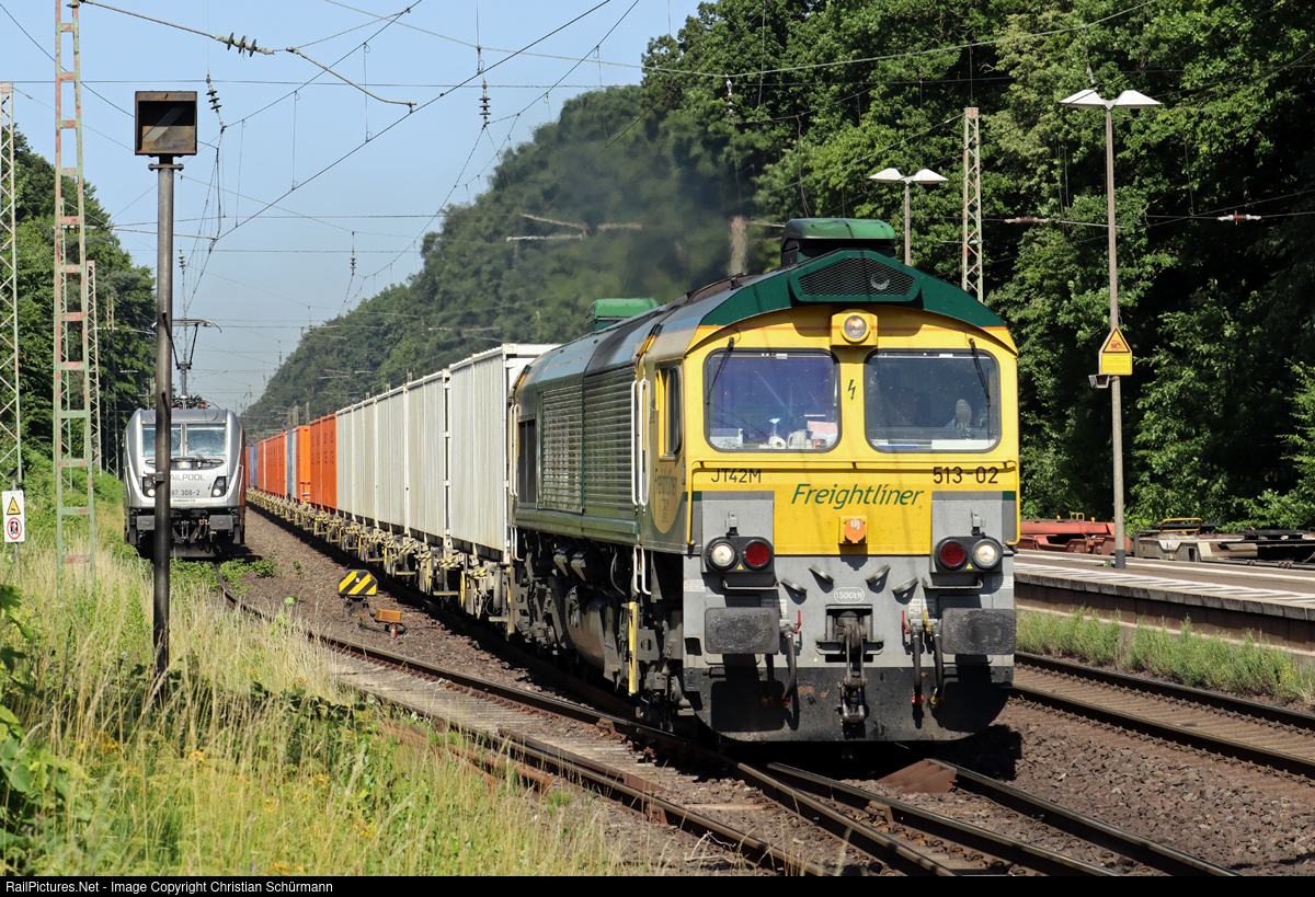 | BRLL 266 026-4 operating for Frightliner Polska with a long containertrain is passing Hämelerwald |