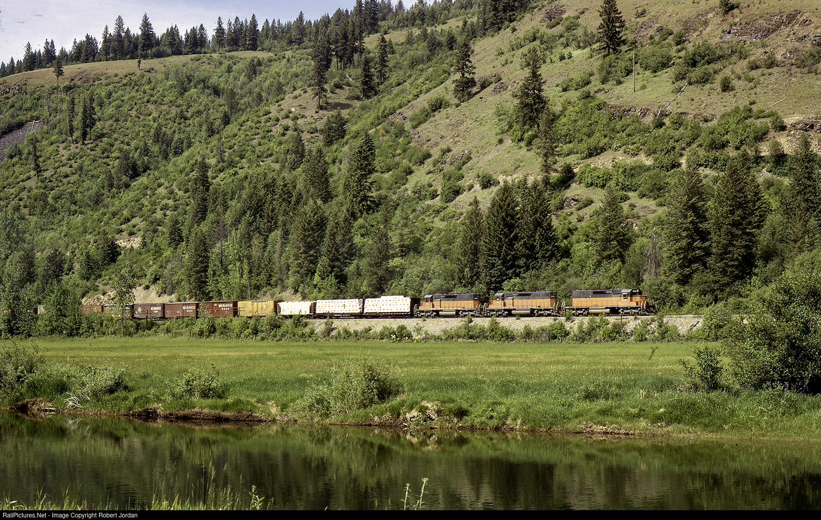 Approaching Avery Idaho where a Little Joe will be added for climb over St. Paul Pass For more 1970's https://www.railpictures.net/album/8659/