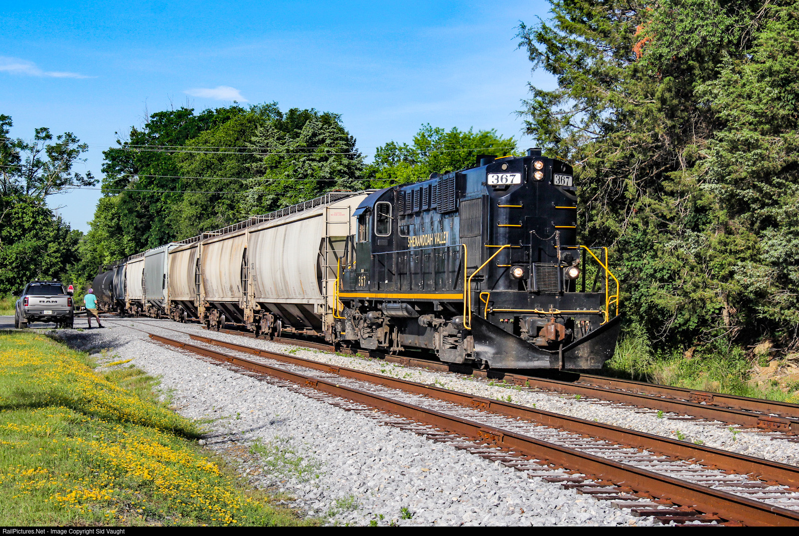 | Celebrity status. As The Great Survivor heads north for her morning work railfans are in attendance. When I worked just to my left many years before the tracks were weed grown, operated by T-6s, and 367 was in its final years with N&W. Everything old can sorta be new again, except me. LOL |