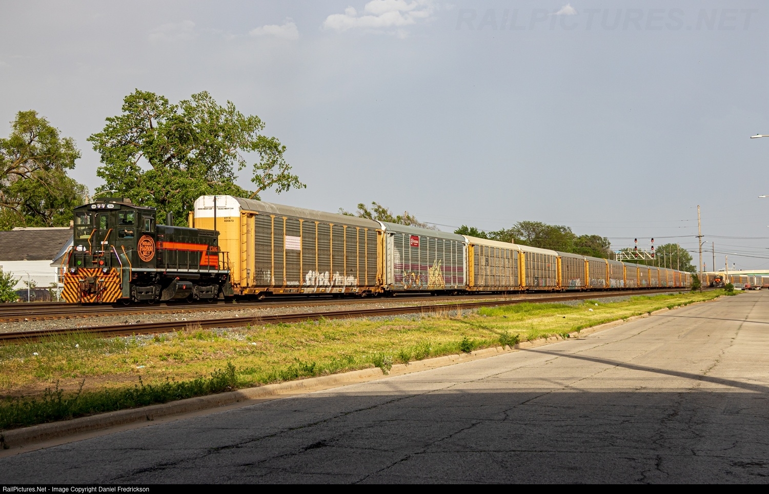 IHB 1516 (SW1500) works the west side of Gibson Yard in Hammond, IN, shunting a long cut of autoracks for an engine of its size. Pretty impressive!