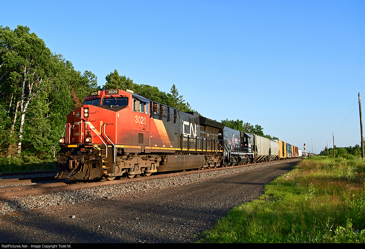 | CN 3020, with a special guest second out in the form of CCGX 1508, on train M347 heading north on the CN Missabe Sub. |