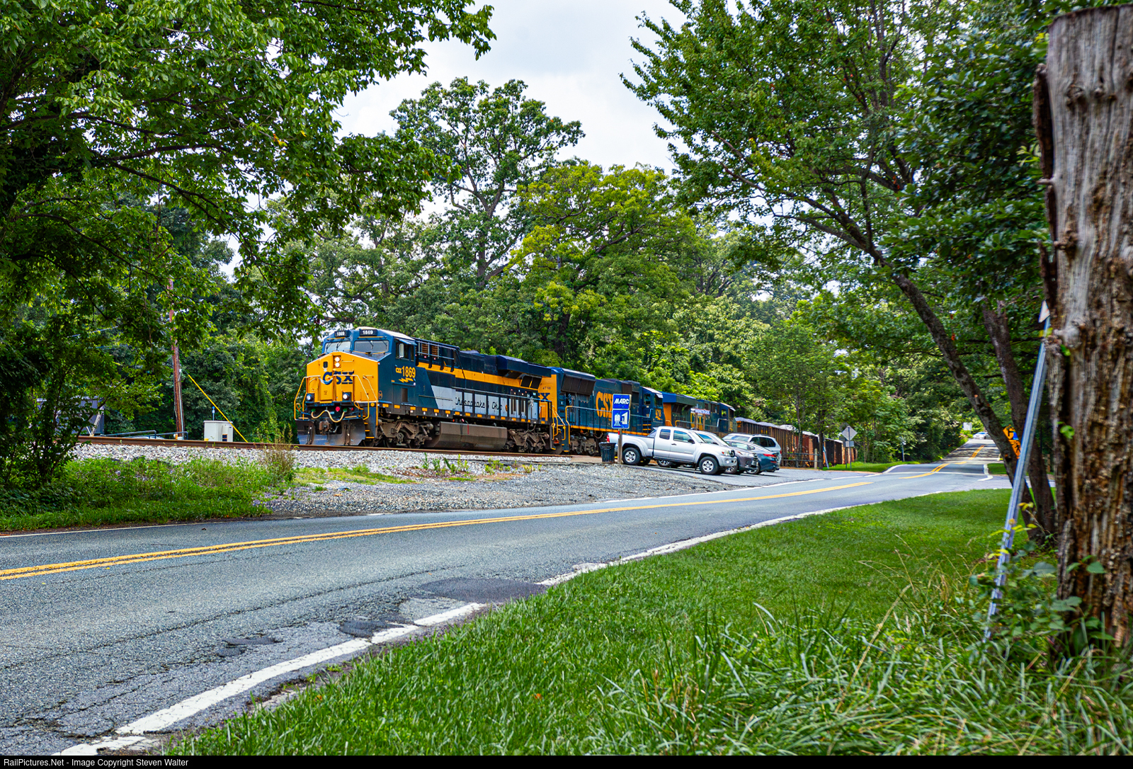 The Chesapeake & Ohio Heritage Unit crests the grade at the front of an aggregate rock train. This rock is loaded in Freyco, VA, and transported down to Benning, DC, which then travels up Amtrak's Northeast Corridor to Bowie, MD, and then down the Pope Creek Subdivision to either Waldorf or La Plata, MD.