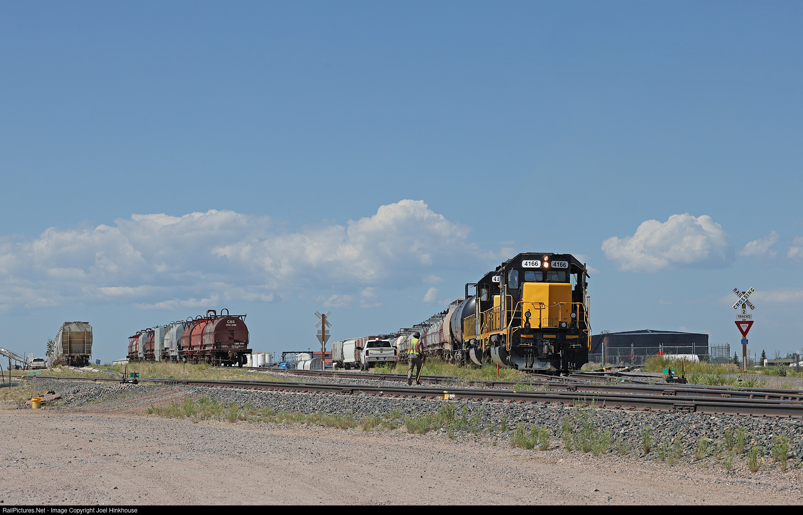 Built in 1968 as a Canadian National SD40, this locomotive is now 57 years old, with a life that saw it upgraded to an SD40-2 for BN/BNSF. Now it moves various traffic for WAMCO road Swan Ranch Railroad in the much newer rail park that has sprawled southwest of Cheyenne, WY. Of the 4 Swan Ranch locos I saw on site, the helper here is WAMX 4184, which began its life as a Mopac SD40-2.
