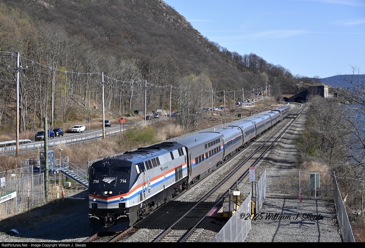 | Amtrak Lake Shore Limited has a larger than normal consist approaching Breakneck station on Friday evening. This train also includes passenger cars being ferried to Chicago for its run as Train 48. P32AC-DM 714 and 11 cars. |