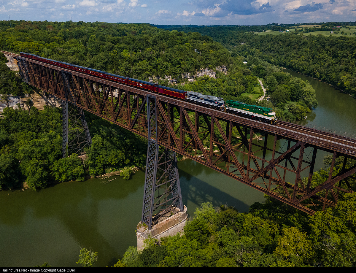 Southern 8099 and Wabash 1070 lead NS 956, an Office Car Special filled with NS executives, across High Bridge as they head for an overnight stay in Danville