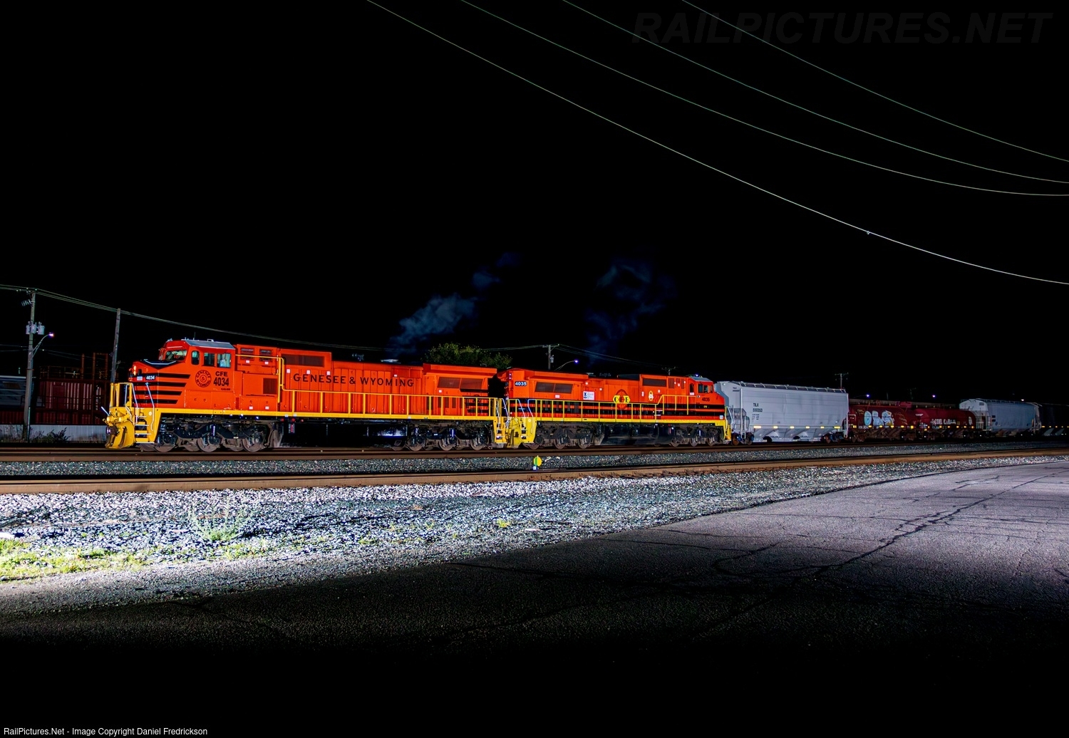 Having received a fresh crew, CFE 4034 and 4035 smoke it up as they accelerate from a stop at the IL-IN state border in Calumet City, IL, ready to continue eastbound with CHFW.
