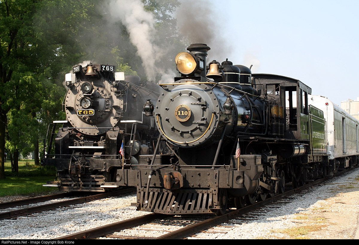 | Little River Railroad's small 4-6-2 has brought the NRHS Convention Special from Coldwater and will hand the train over to NKP 765 in Quincy, MI. |