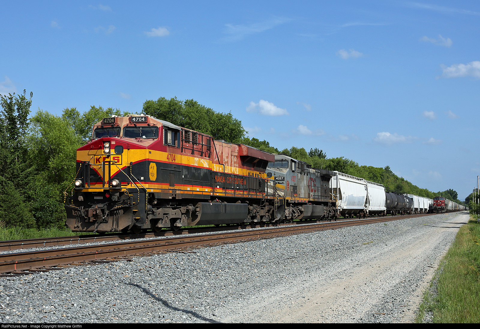 RailPictures.Net Photo: KCS 4704 CPKC Railway GE AC4400CW at Heavener, Oklahoma by Matthew Griffin