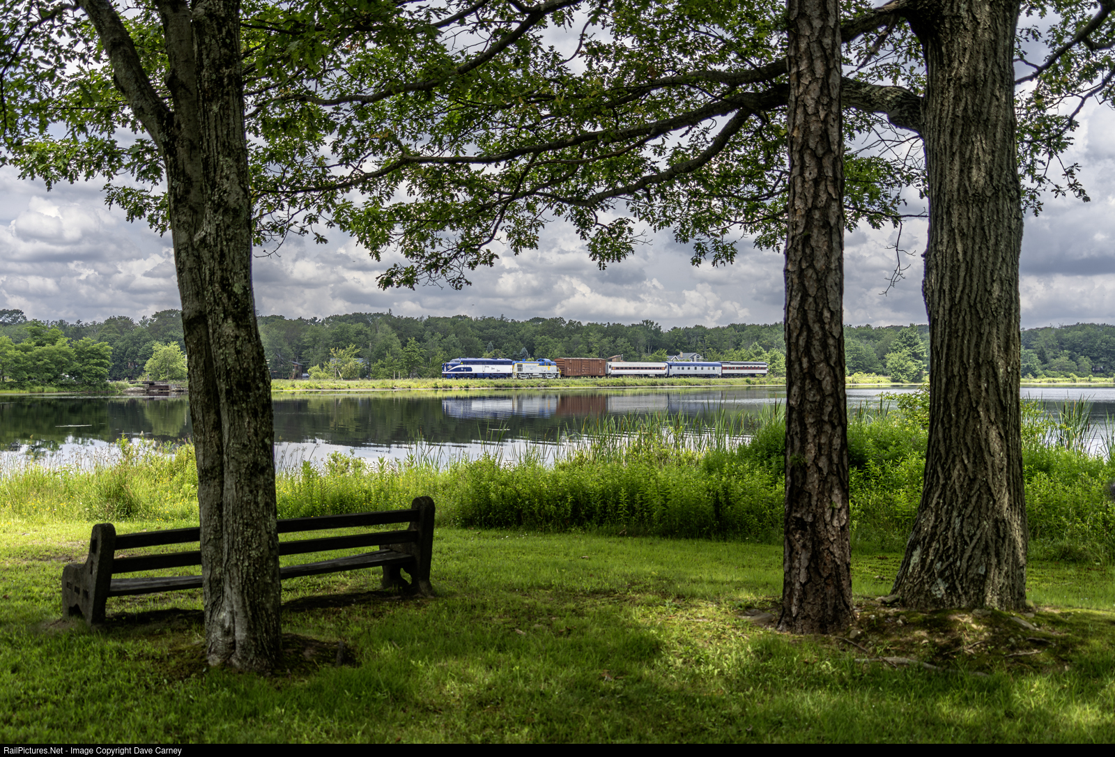 DL 190 leads its train across the Pocono Summit Lake causeway.