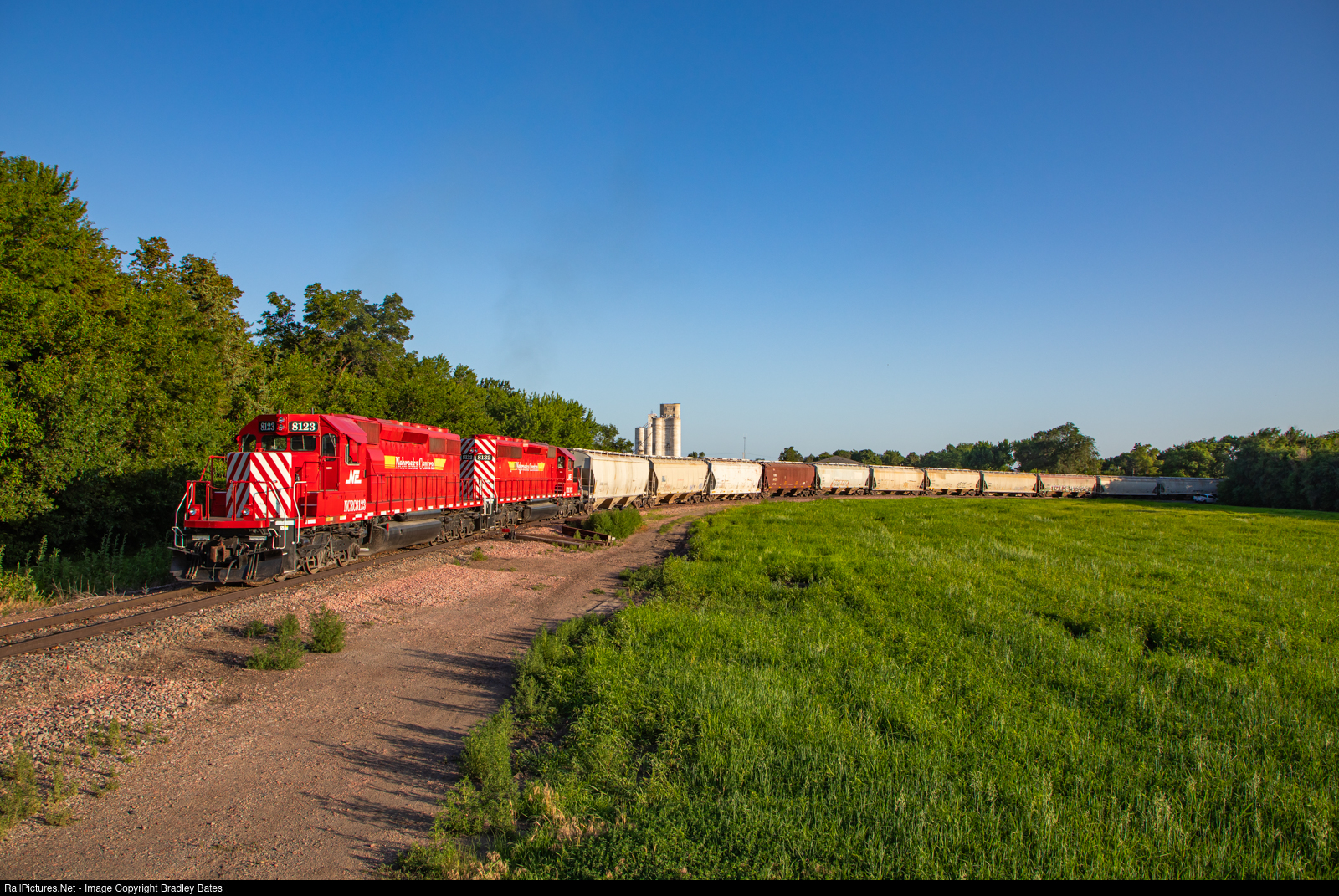 | Nebraska Central Railroad's ADM Turn comes off their line and onto BNSF's Bellwood Sub at David City, NE. for the run north to Columbus. |