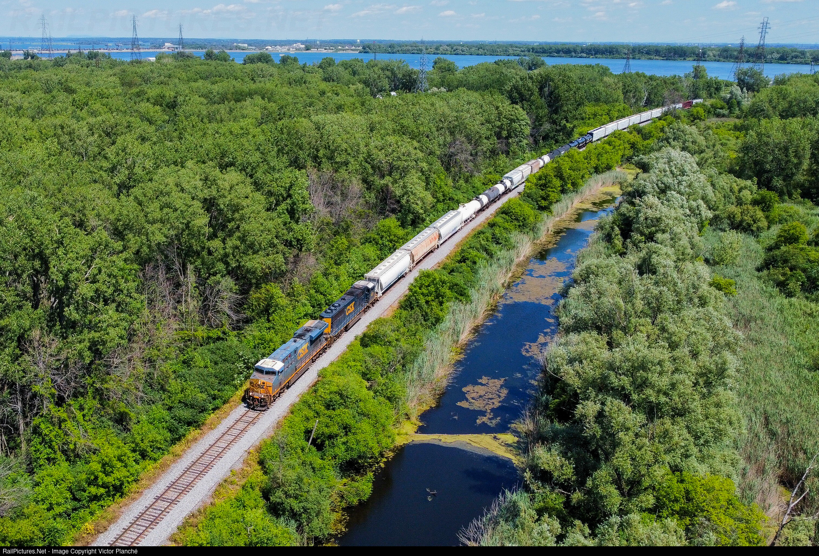CSX train L039 has just crossed the Beauharnois Canal as it rolls towards Massena, NY.