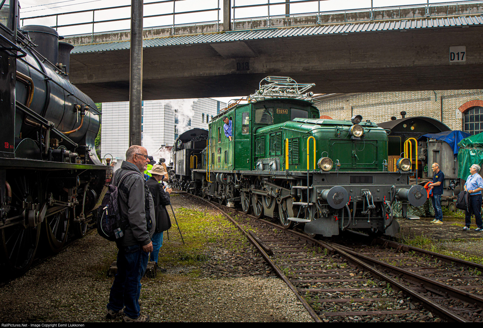 | The class Be 6/8 II electric locomotive number 13254 "Crocodile" is pushed to a siding by the class C 5/6 steam locomotive number 2978. The Crocodile will be shown for the public and even small tours in the cab were possible. |