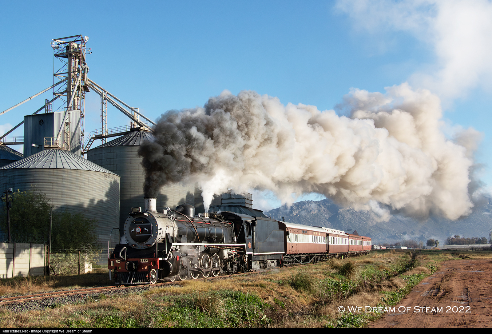| 19D 3322 on a short passenger train, passing the grain silo at Ceres |