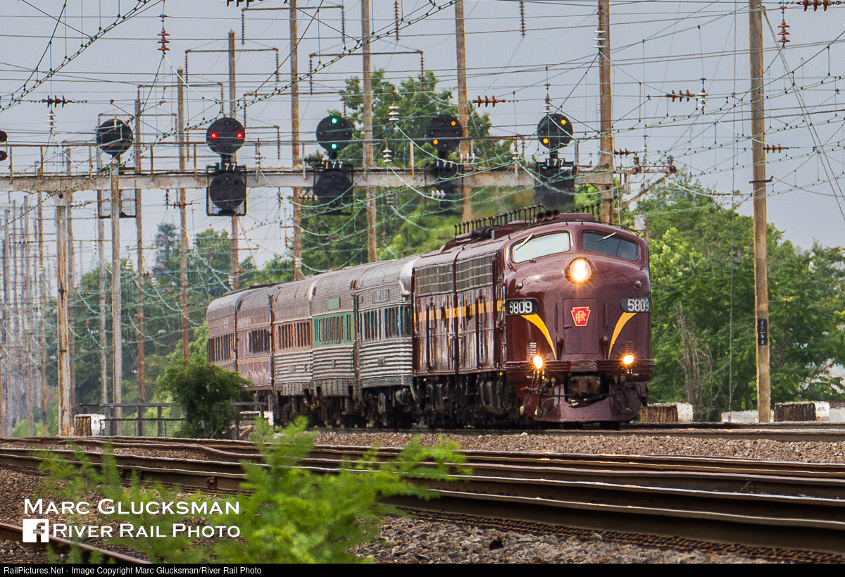 PRR At CPLs. Juniata Terminal Railroad's former Pennsylvania Railroad E8As 5809 and 5711 were the power for an excursion special for the American Association of Railroad Superintendents (AARS) July 21, 2013, in New Jersey. A train of private varnish from Juniata Terminal, Morristown & Erie and Webb Rail LLC that picked up passengers at Newark Penn Station in Newark, New Jersey, for a rare mileage trip over Conrail Shared Assets Operations trackage and returned to Newark Penn later in the day. The train is seen deadheading up the Northeast Corridor Line in Linden, New Jersey, passing under classic color position light signals. Expecting the train to be on the 'natural' northbound tracks, fast feet at least allowed us to avoid being blocked by the fence in the station.