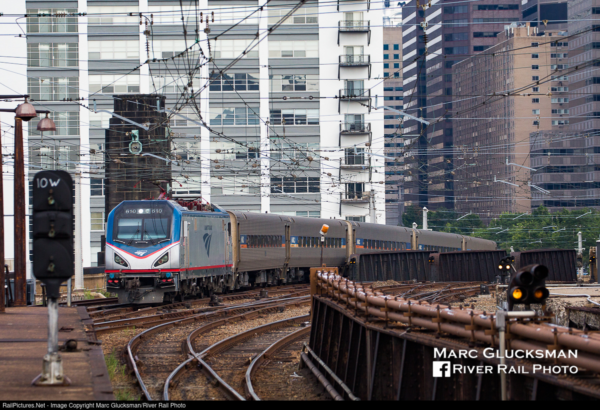 MARC in PA. Around this time, problems with the Silverliner V fleet caused Southeastern Pennsylvania Transportation Authority (SEPTA) to lease equipment from other agencies to substitute for those cars in service while repairs were made. On July 22, 2016, SEPTA Train 1297 climbs the hill to 30th Street Station's upper level with Amtrak ACS-64 610 leading five leased Maryland Area Regional Commuter (MARC) cars towards Newark, Delaware. The problems would be corrected over the next few weeks, and the leased equipment was returned.