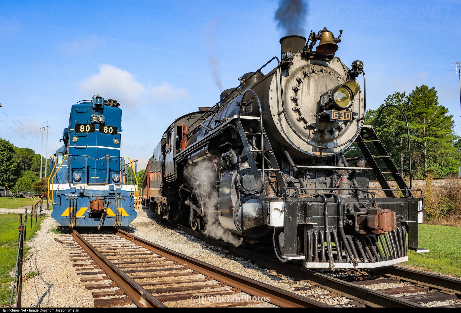 Different generations of equipment, Southern 630 and TAG 80, idle in the morning light at Grand Junction. |
