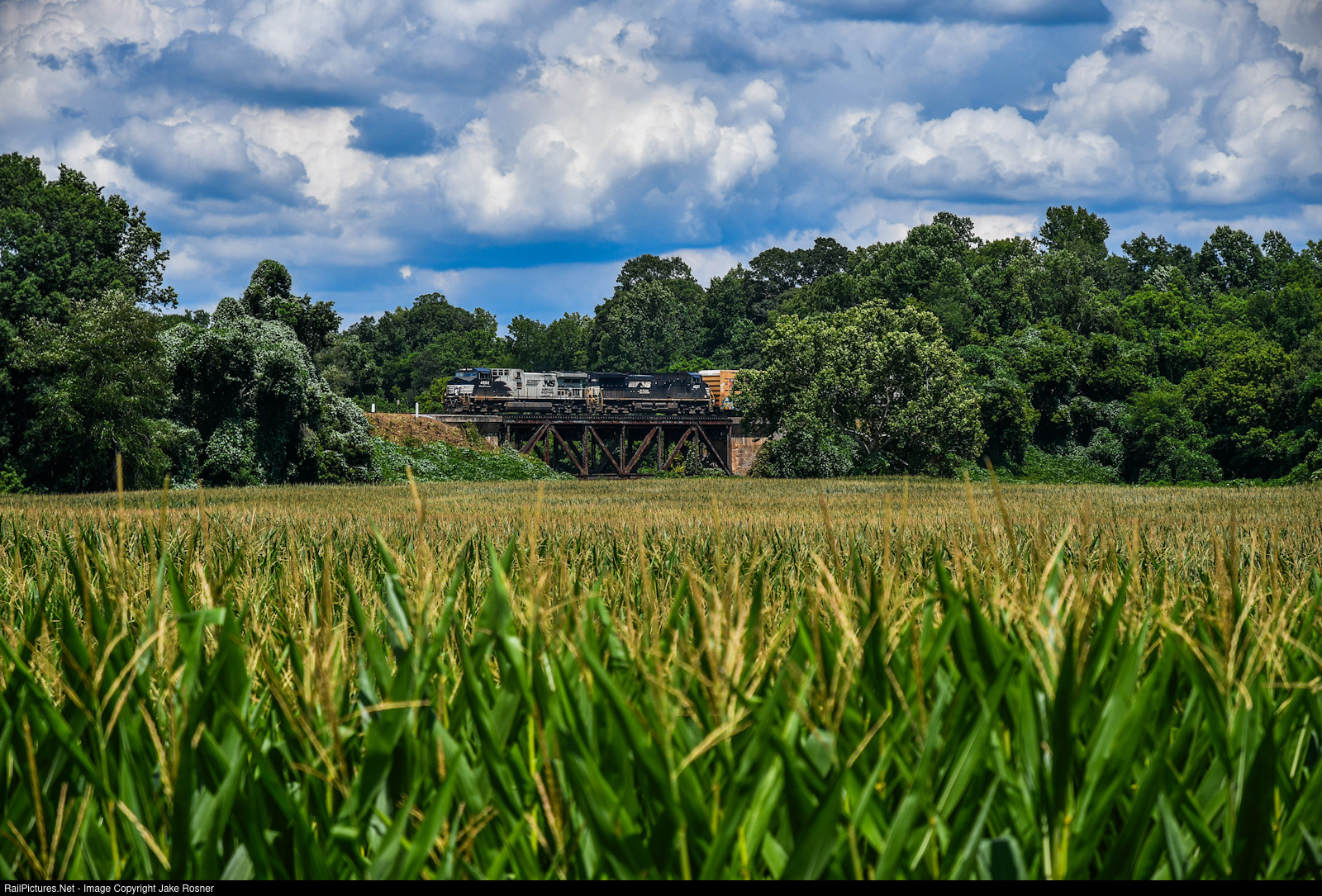 Shortly after working Barber, NS P61 gets moving towards its next scheduled stop, Statesville. Only a couple miles outside barber, they’re up to track speed as they fly across the Third Creek Trestle outside of downtown Cleveland NC. NS 4002 leads the way, as it’s been held captive on the P61 rotation for a couple of weeks now.