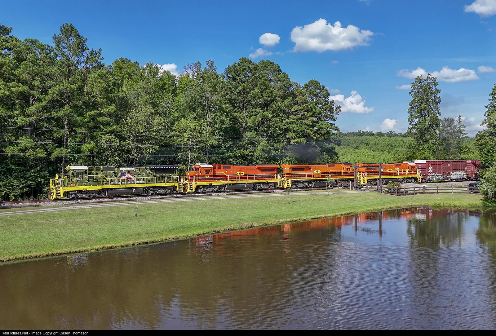 Georgia Central's "veterans" unit leads the afternoon L782 west by Snows Pond near Jeffersonville, Georgia.