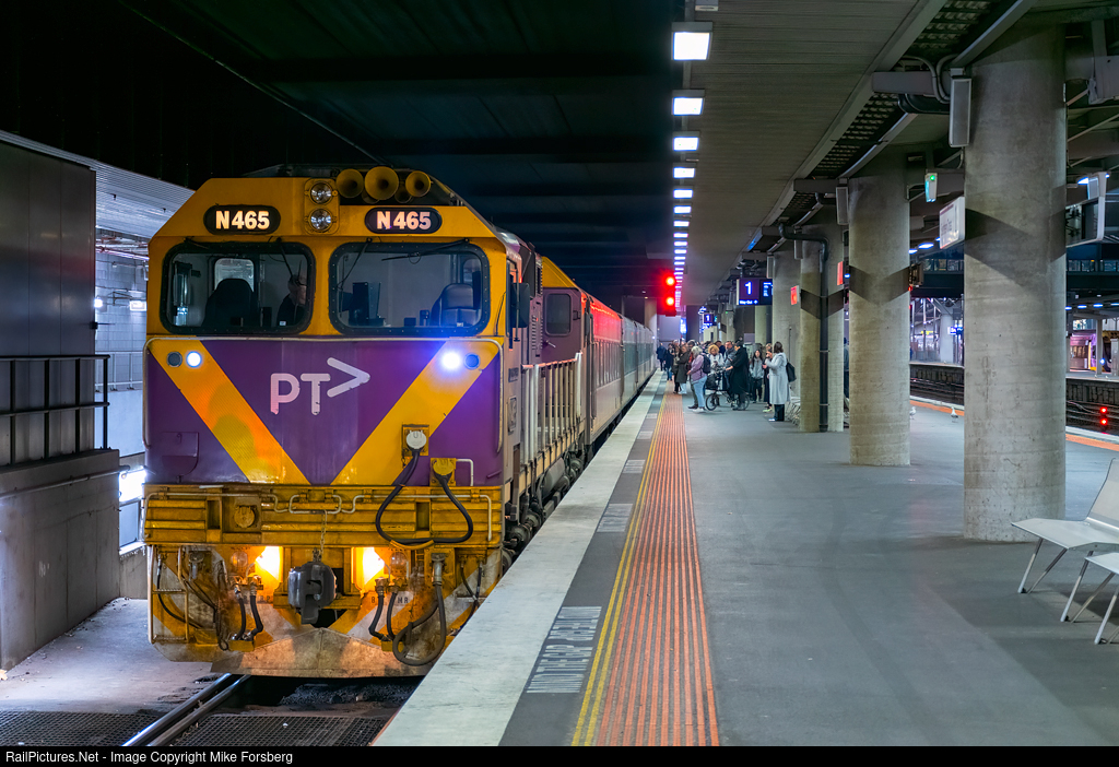 N465 prepares to depart Southern Cross Station with an 18:08 Swan Hill service.