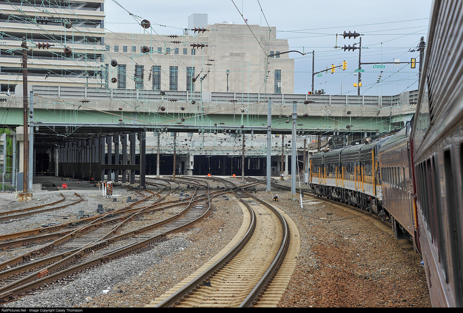 | Scooting north from DC along Amtrak's Northeast Corridor on a Norfolk Southern office car special to New Jersey, we passed through Penn Interlocking and Amtrak's Philly station at 5:17pm. It was fun hearing the F's scream along in places at 95mph! |
