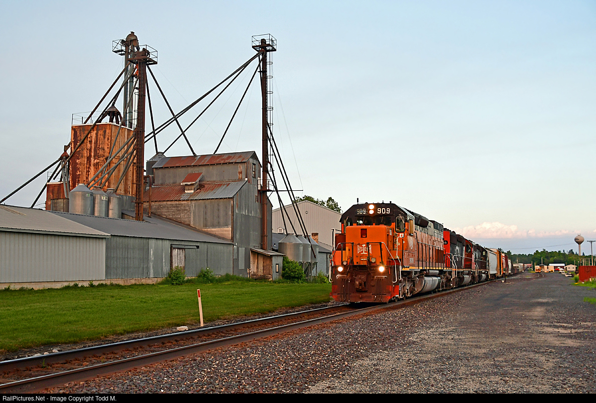 Just after sunset, BLE 909, IC 6256 and IC 6260 pull A439 through the small town of Cook, MN as they travel to Symington Yard-Winnipeg, MB with freight from Proctor Yard in Proctor, MN.