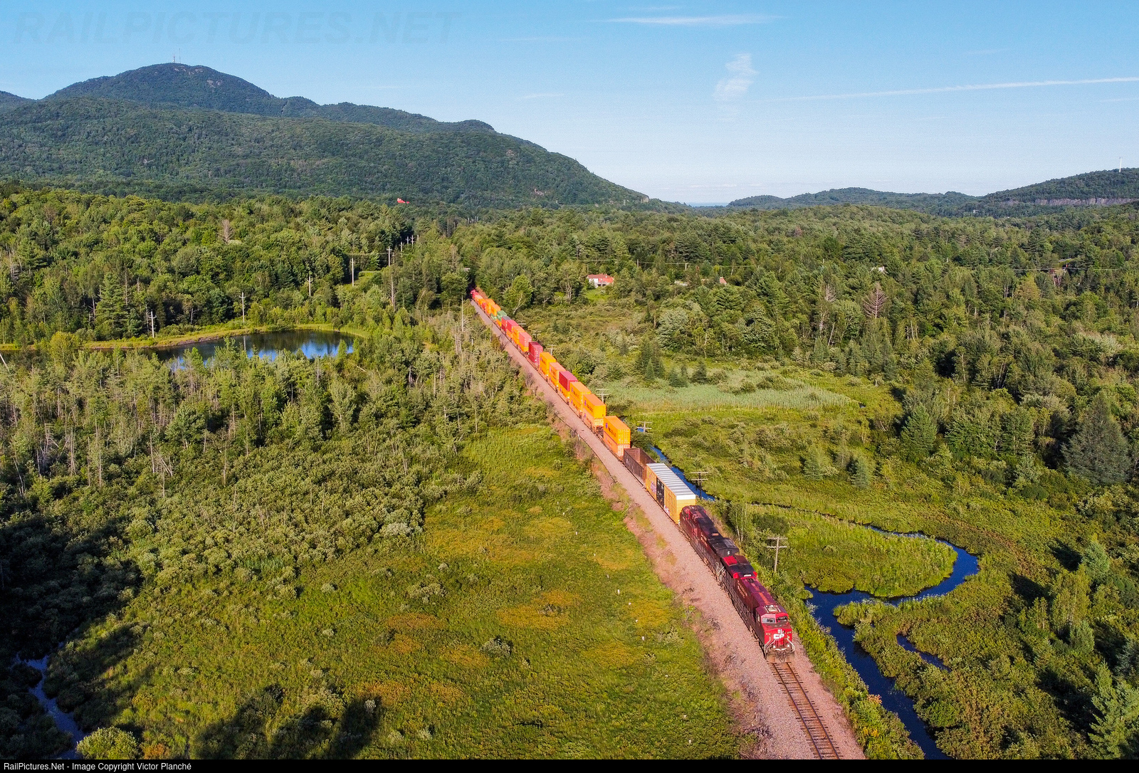CPKC train 121 has just passed the Orford area and continue its trip towards Farnham and Montréal.