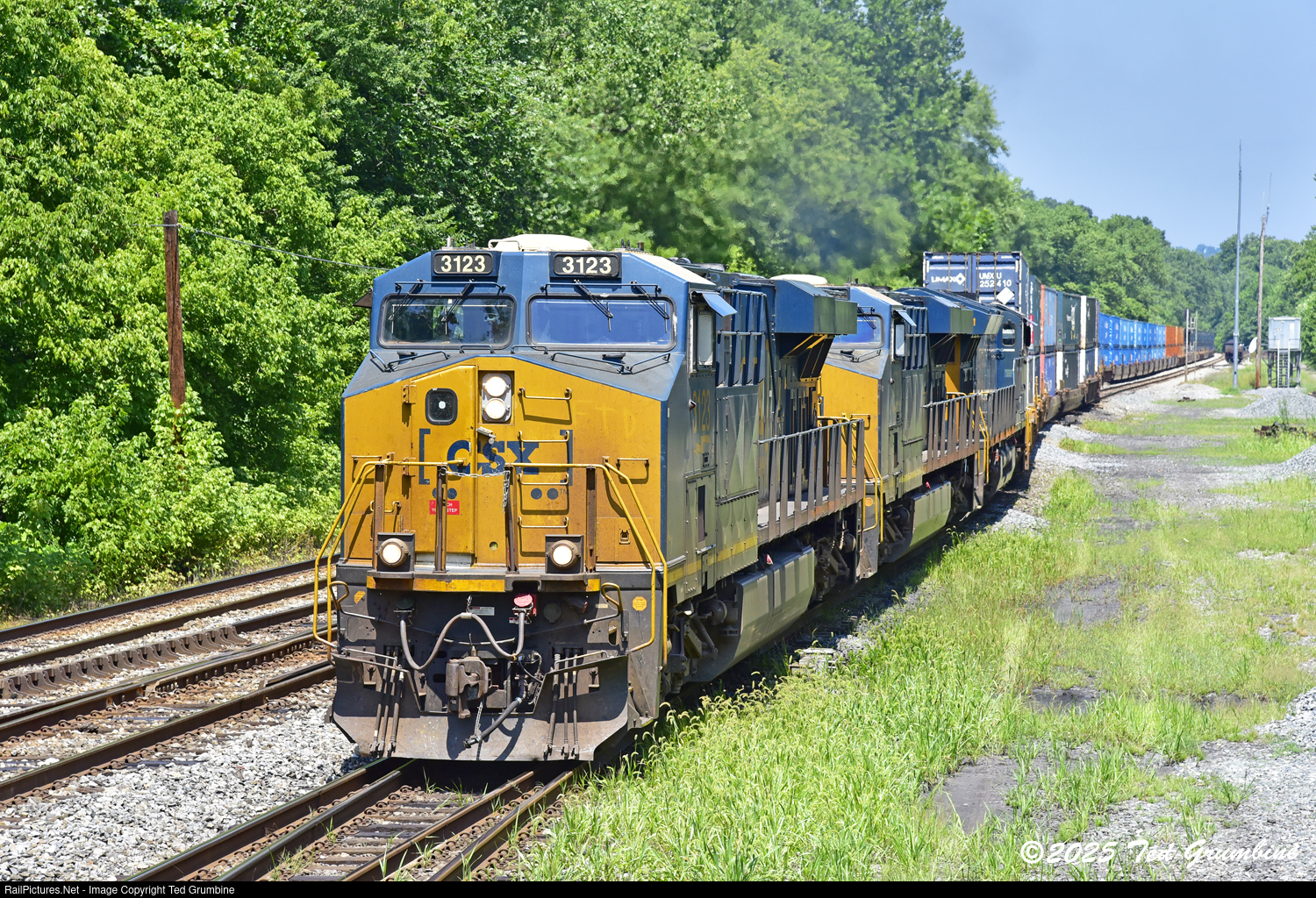 After holding at the eastbound signal for the westbound I115-22 to clear the CHERRY RUN interlocking, counterpart I116-21 (Bedford Park, IL to Chambersburg, PA) diverges 2 to 1 to 4, where it’s lined for the Lurgan Sub in order to cross the Potomac River on the ex-WM bridge into Big Pool, Maryland.