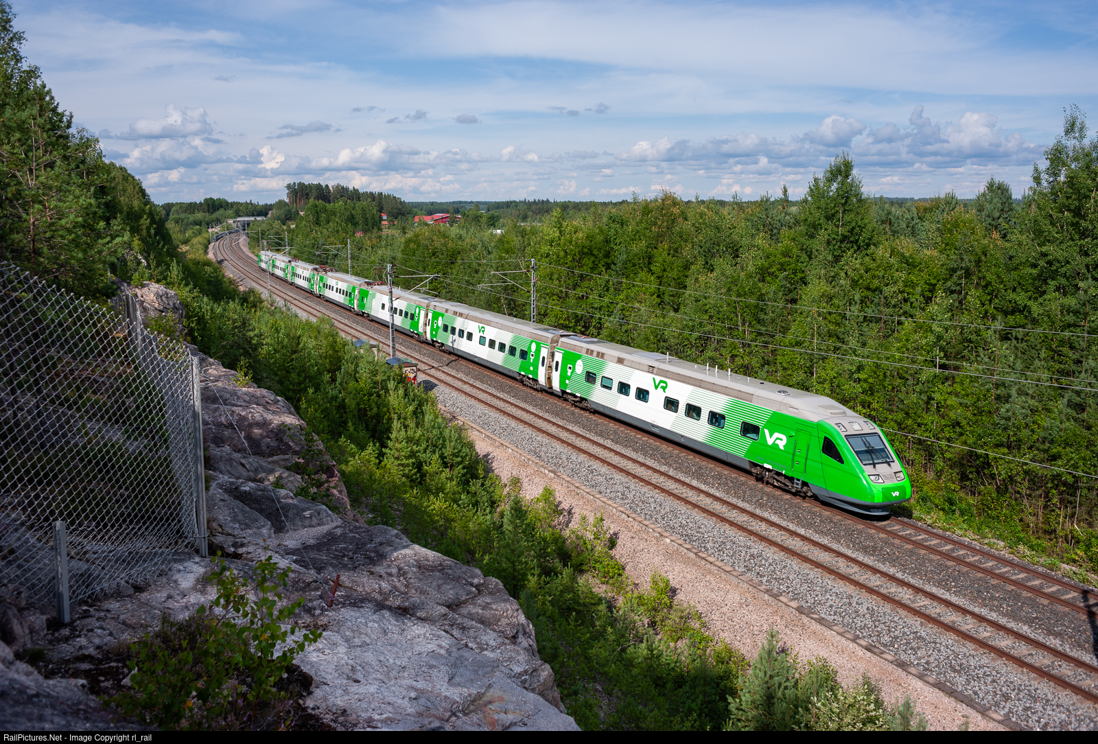 | Pendolino Plus test run from Ilmala depot to Lahti. Finnish Railways (VR) will introduce new Pendolino Plus service on Helsinki-Turku route starting from 3.11.2025. These are class Sm6 Pendolino high-speed trains that used to run between Helsinki and St. Petersburg until 2022. |