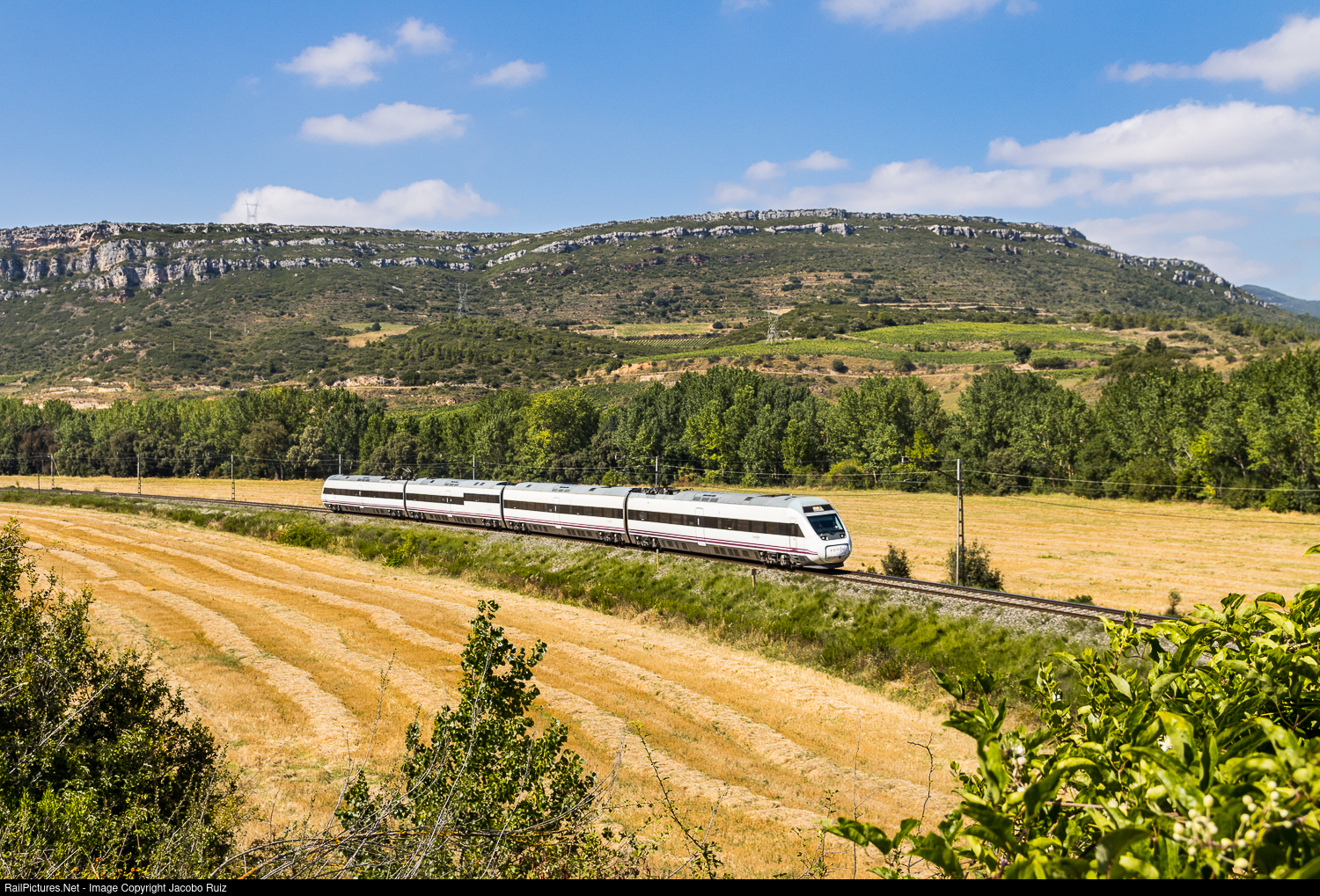 Alvia train 00437 from Bilbao-Abando bound for Barcelona-Sants. Here between Miranda de Ebro and Haro.