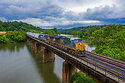 With stormy skies overhead threatening to rain at any minute, CSX manifest M421 heads east on the Keystone Subdivision behind a pair of ET44AC's and a GP40-2. The train is crossing the Youghiogheny River into Versailles, Pennsylvania which takes the tracks from the from the former P&LE to the B&O.