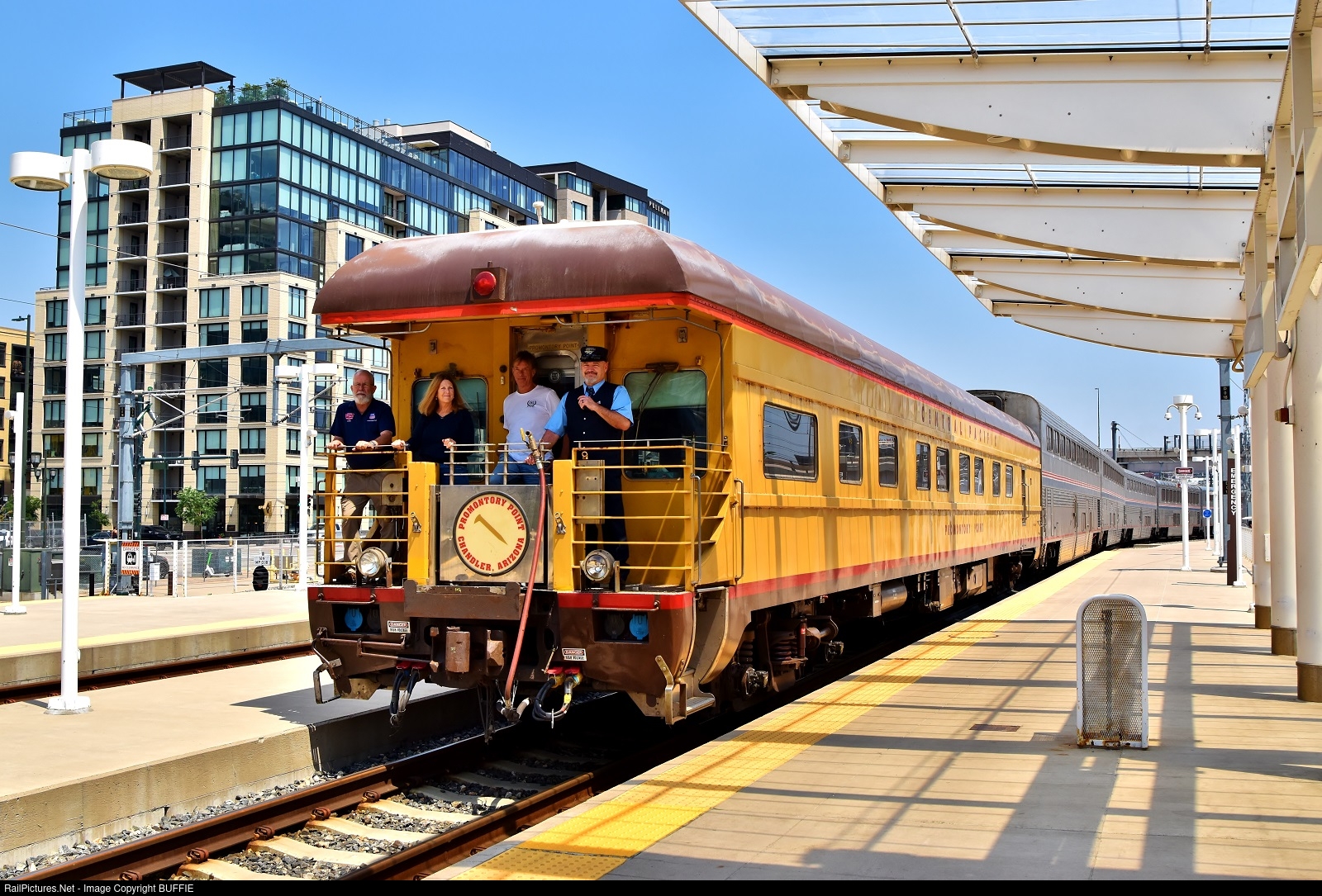 | PPCX 800724, a Central Pacific Railroad private car named 'Promontory Point', backs into Denver's Union Station on the rear of the California Zephyr #5 train. The car was built in 1953 for the Pullman Railroad.