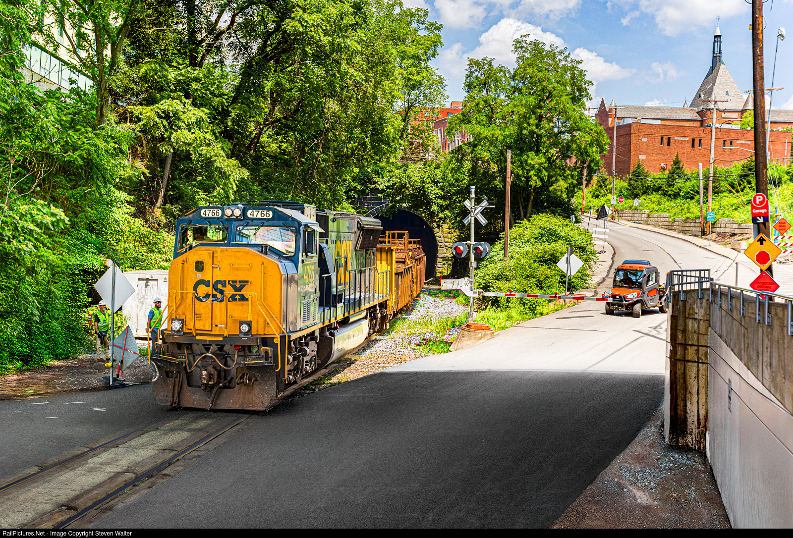 CSXT W303, a rail train, drops rail inside the Schenley Tunnel on CSX's P&W Subdivision. The east portal exits right between the University of Pittsburgh and Carnegie Mellon University. This was the farthest they reversed into the tunnel to drop rail; of course, the engine stayed in the shadows. The P&W Sub branches off the Pittsburgh Sub at CP Braddock and ends around Polish Hill in Pittsburgh at CP Field. P&W trackage west of AVR's Glenwood yard is mainly only traversed by Amtrak's Floridian and a few AVR locals out of Glenwood Yard, so seeing CSX this far up in preparation to maintain their line was cool to see.