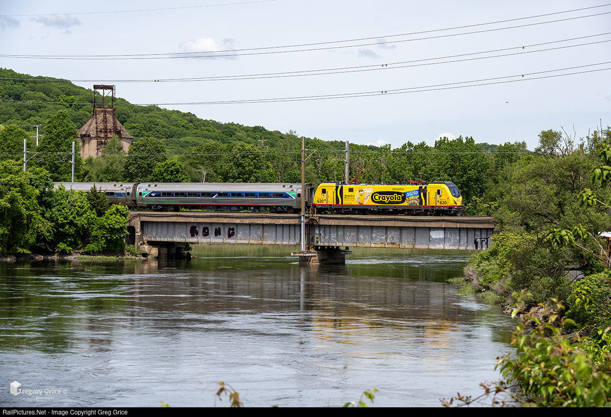 620 is one of two locomotives wrapped in special Crayola schemes as part of a partnership to promote family travel and creative exploration. This unit features the color Dandelion, a golden yellow and one of the fan-favorite crayon colors brought back from retirement, and stars crayon character "Dan D," the Crayola Ambassador of Creativity.