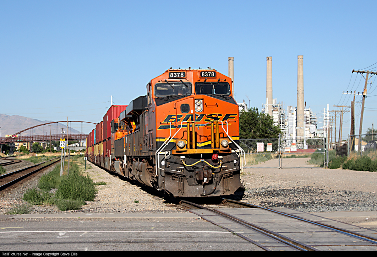 My first Utah BNSF stack train in action. On Saturday morning they were backing out of the Salt Lake Garfield & Western track age (Patriot Rail). There were some issue with the train. The conductor was on the ground, we exchanged pleasantries, he want to take a look at my pictures. While we were talking, the Patriot Rail folks showed up, to resolve the issues of how the train was built. The engineer was at the head end of the train. The UP main they will be taking is just to the left.