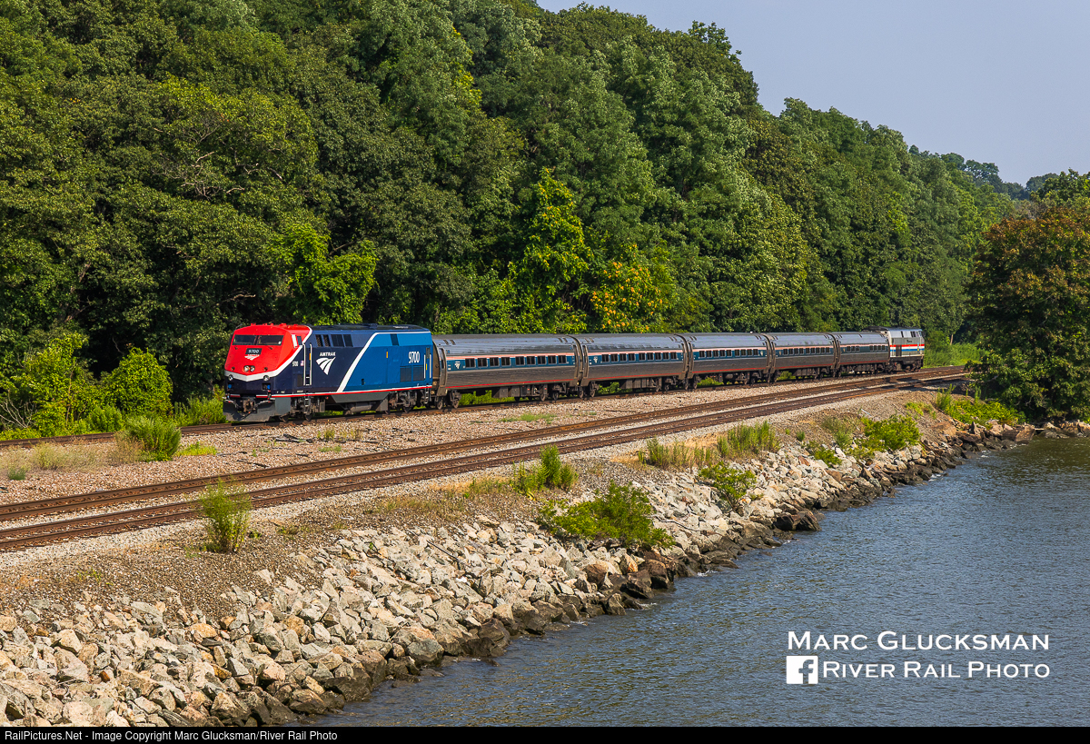 Sound From The Rear. Amtrak 291 (Ethan Allen Express) was running about an hour behind schedule on the afternoon of Sunday, August 3, 2025, when it passed through Oscawana Island in Croton-On-Hudson, New York, improving the light for the photographers. With P42C AMTK 9700 leading, the train was fairly quiet on the approach and noisy in the rear. This P42C, the only one operating on Amtrak at present, is a rebuild of P42DC AMTK 184. During this process, the prime mover was deactivated and the locomotive was painted and renumbered, essentially turning it into a cab car version of a locomotive.