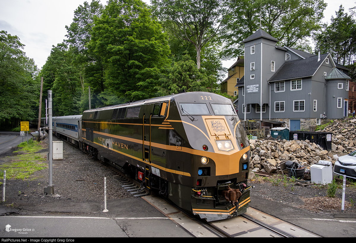 On the evening of May 30th, 2025, Metro-North's 40th Anniversary "New Haven Railroad" heritage unit MNCW 222, leads train 1848 past the former Geoppler Cider & Vinegar Mill in Redding, Connecticut on the Danbury Branch. Constructed in the early 1890's, the four-story mill was a multipurpose building that was utilized as a train station (Sanford Station) and also a post office in the early 1900s. Geoppler ceased all operations around 1940 and the mill was sold to private owners who rebuilt the structure into a residence.