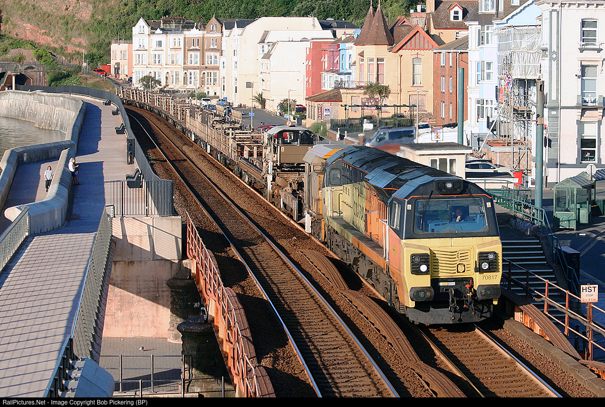| A rail train, the 6C97 is spotted passing Dawish. It has taken me 11 years of trips to the UK to get a shot of a Class 70. |