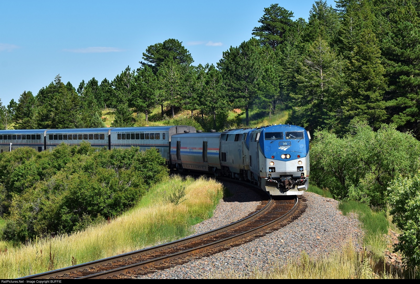 | The California Zephyr rounds the curve at Blue Mountain, Colorado as it heads into the Colorado Rockies on the Moffat Tunnel Sub. |