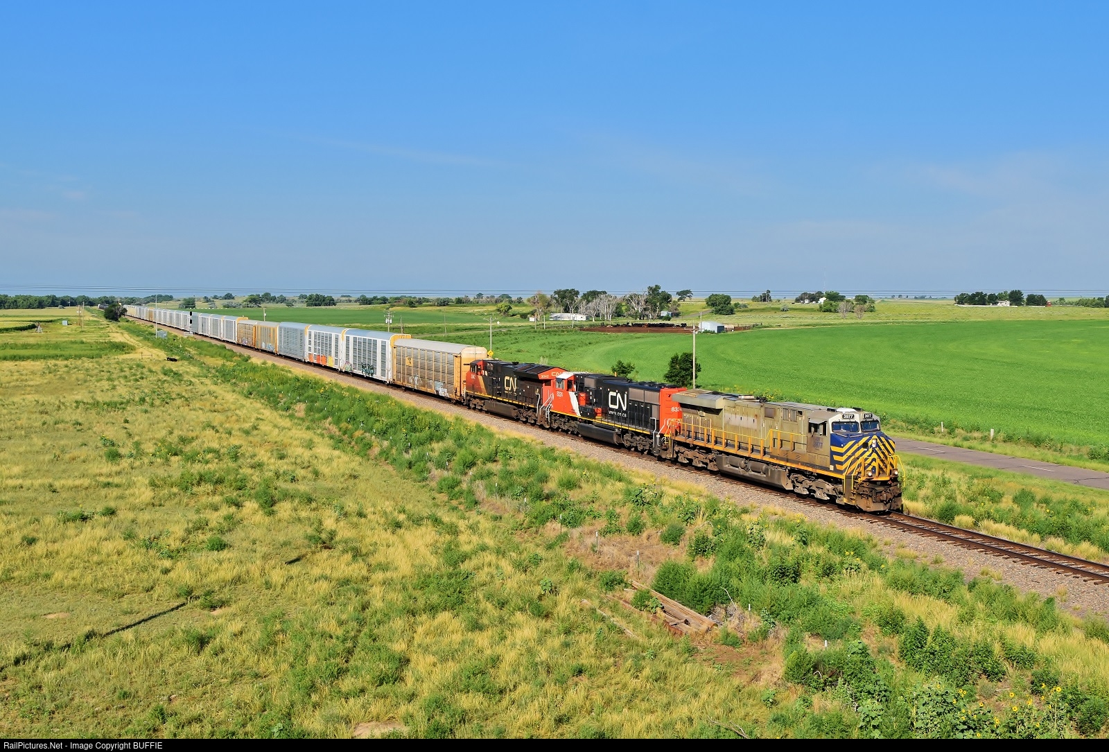 | Canadian National 3977 (former Citi Rail ES44AC) leads a freight through Merino, Colorado on its way to Sterling.