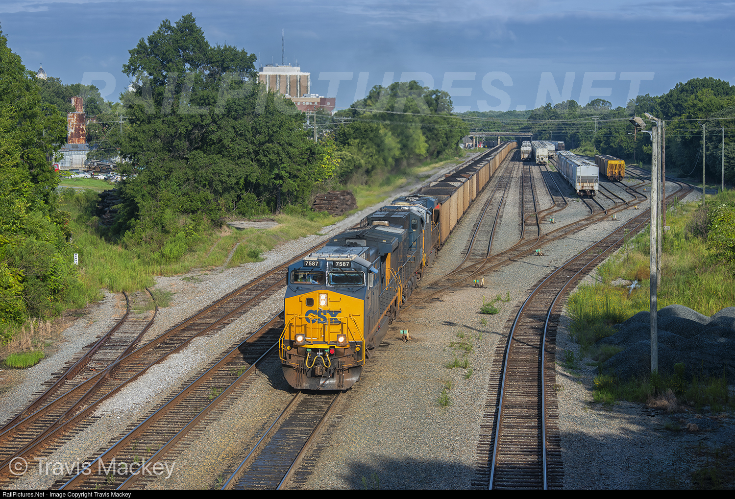CSX C402 pulling down track 2 through Monroe Yard as it prepares to run around its train and go up the Charlotte Sub towards Cliffside Steam Station at Brice