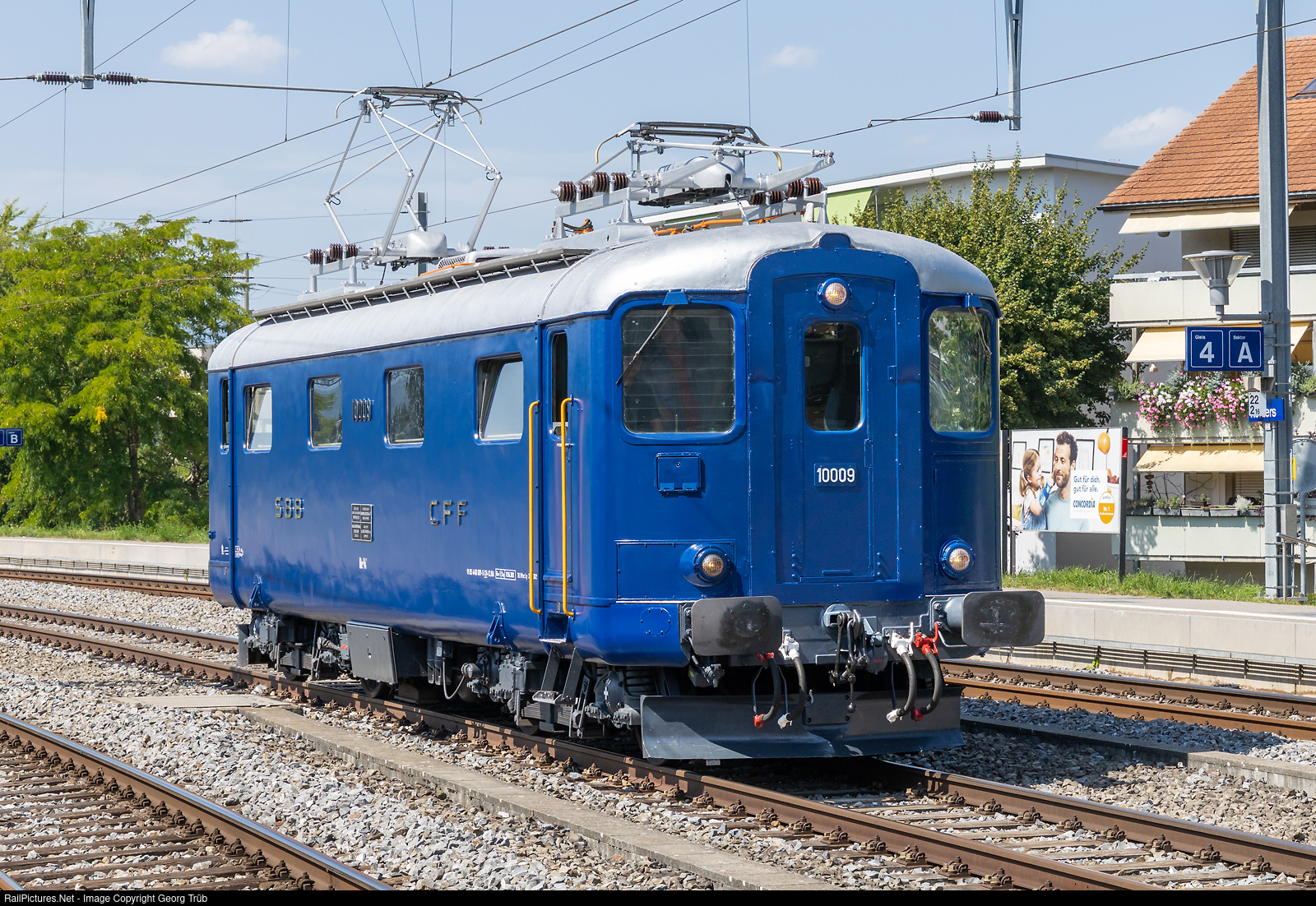 | Privately owned former SBB electrolocomotive Re 4/4 I # 10009 of Classic Rail in Kerzers. The locomotive had this blue color in 1957 to 1959 when running as # 409 for the SBB. |
