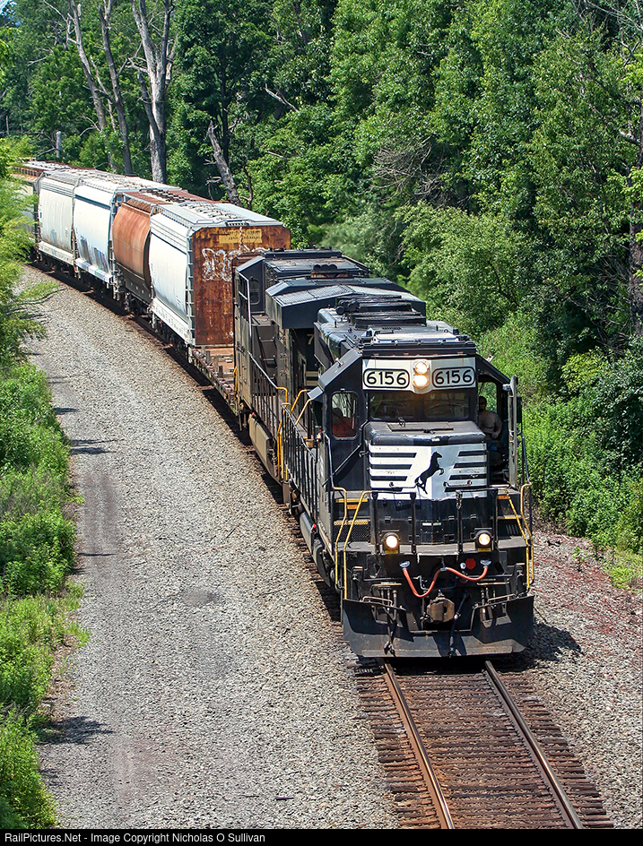 | On the Road: An old Norfolk & Western SD40-2 that is often relegated to yard duty gets out on the road today on NS H76. The leader was originally NW 6156 for the Norfolk & Western and has retained its original P5 horn throughout the years. Also unusual on H76 in this photo is the trailing unit: ES44DC NS 7522. |