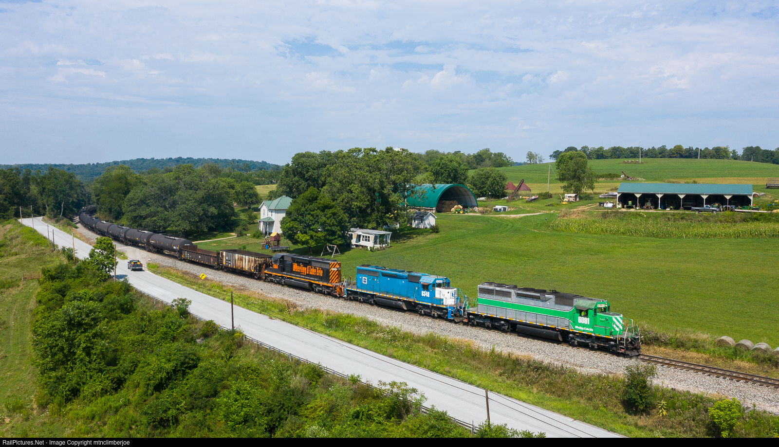 With work completed in Avella, Wheeling & Lake Erie train 218 is back on the move east over the Rook Subdivision as it passes by a farm outside of Rea, Pennsylvania. A mixed trio of SD40's power the train as it heads towards Rook Yard.