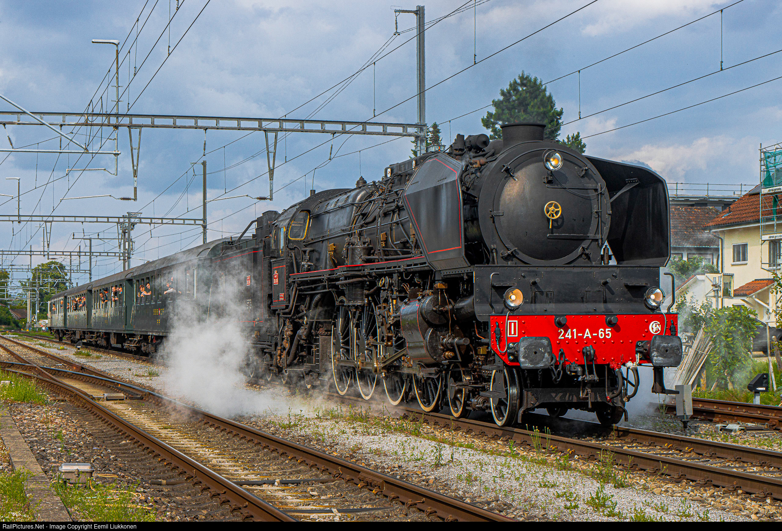 | It's seems to be a normal day at the small Swiss town of Laufenburg, especially on the rails, but something big and old is making a grand entrance. The former SCNF steam locomotive 241-A-65 has arrived at its last destination. One of the biggest steam locomotives in Europe has attracted many onlookers as the steaming giant is doing its task where it is very good at. |